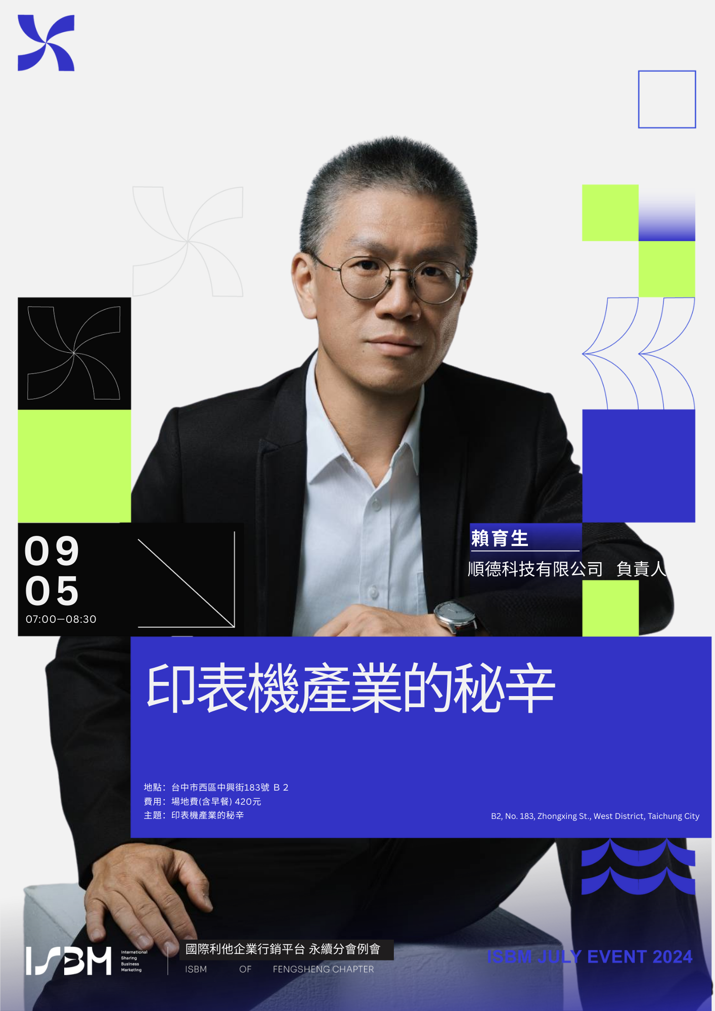 時間:09/05(五) 早上7:00 - 8:30 (鼓勵參加6:45-7:00的商務交流)
