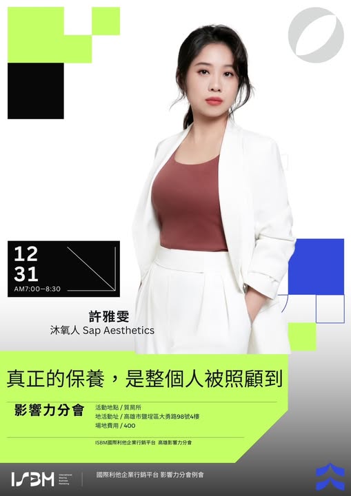 誠摯邀約您,12/31(三)早上6點45分走進 ISBM 影響力分會,參與 許雅雯 執行顧問 專講分享。