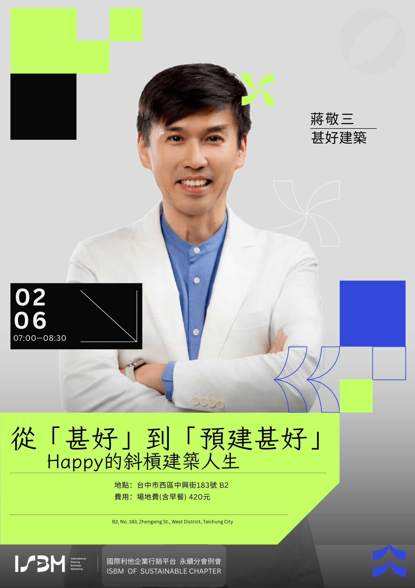 台中永續分會例會報名 -0206 從[甚好]到[預建甚好] Happy的斜槓建築人生