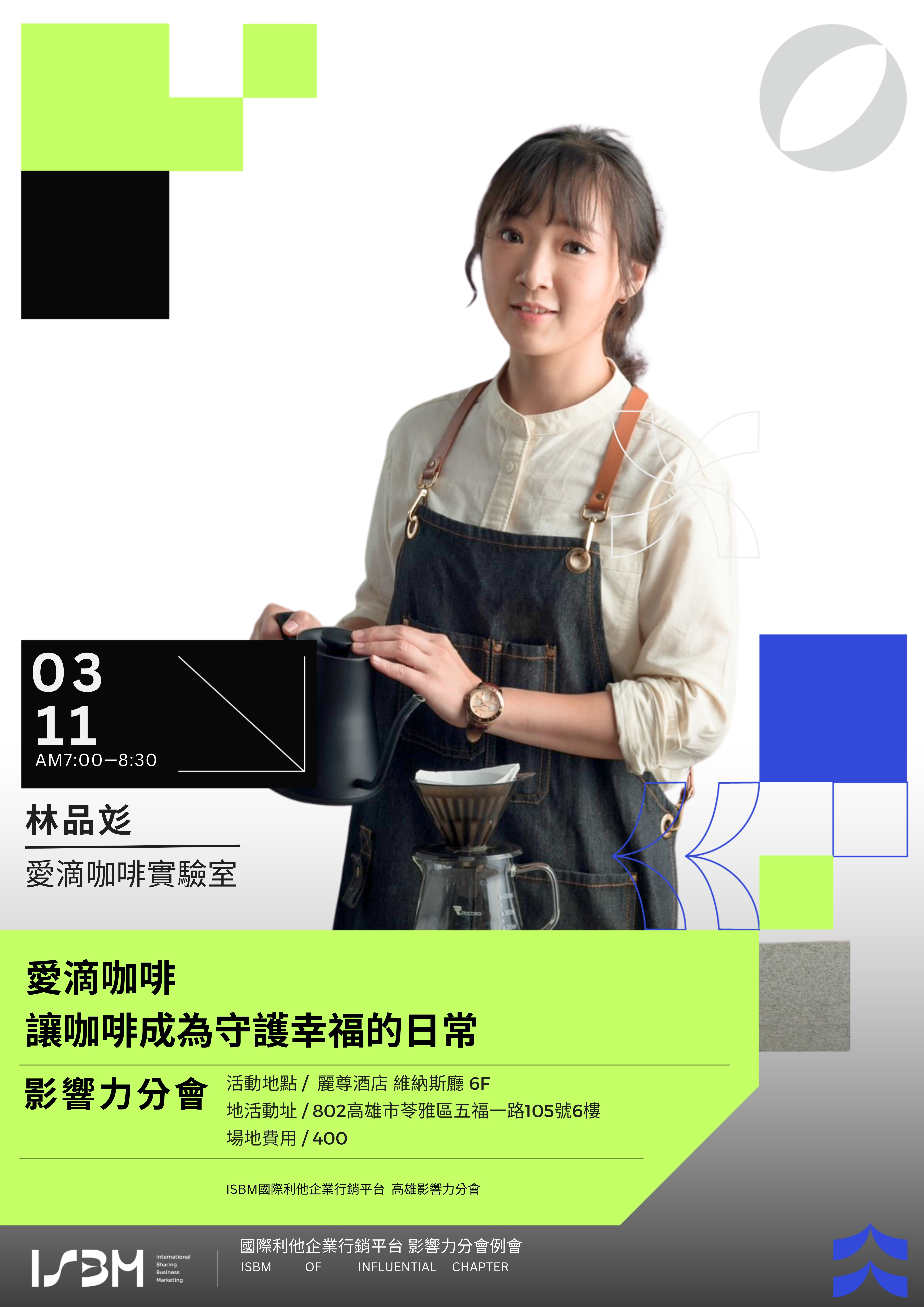 誠摯的邀約您於 3/11 (三) 早上6:45走進ISBM影響力分會,參與品彣的創業旅程以及專業分享