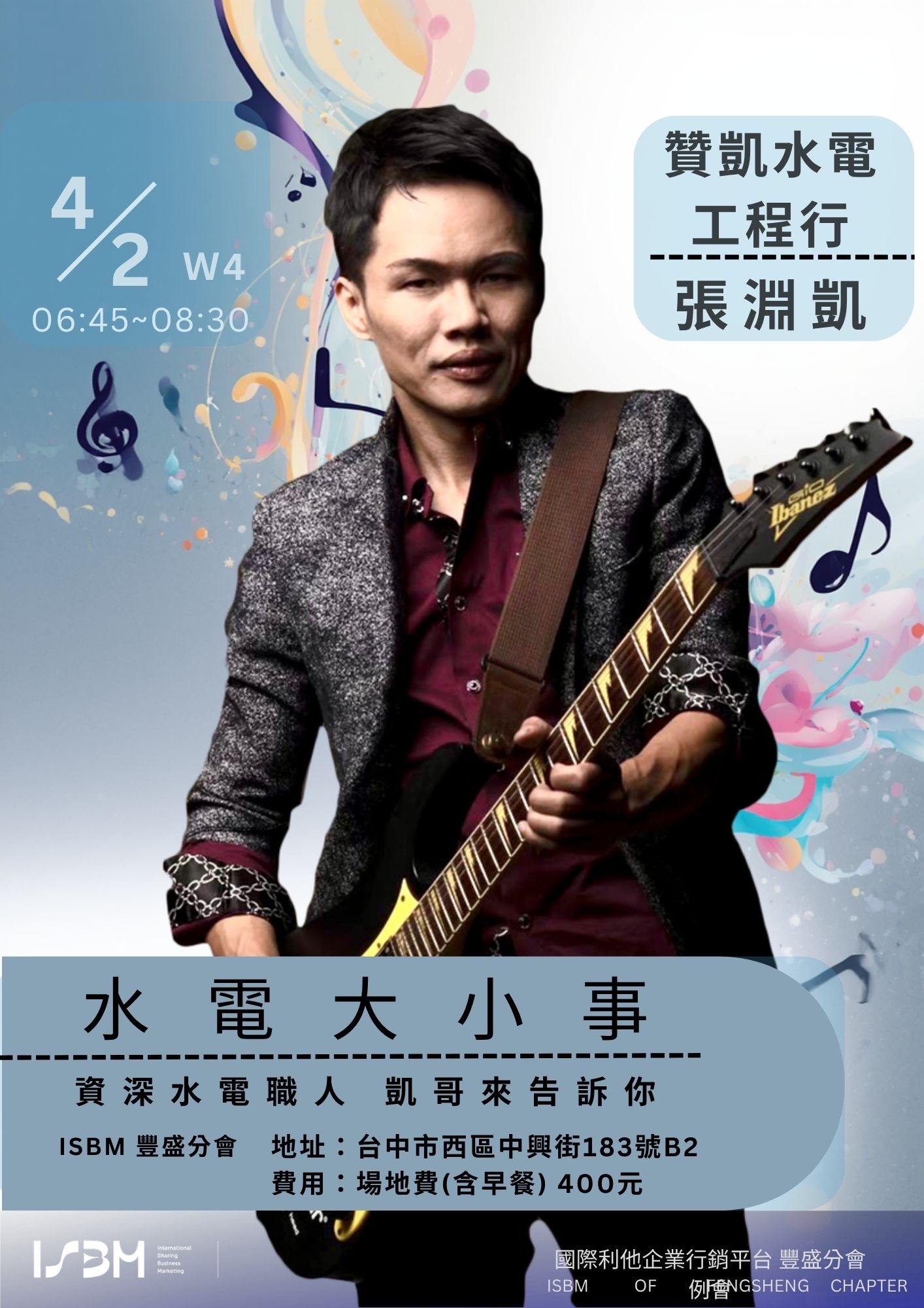 🗓 時間:4/2 (四) 早上 7:00 - 8:30 ( 鼓勵參加 6:45-7:00的商務交流 )📌 地點:台中市西區中興街183號B2 (市民廣場旁)👛 費用:場地費(含早餐) 400元🎯 主題:從甚好到預見甚好
